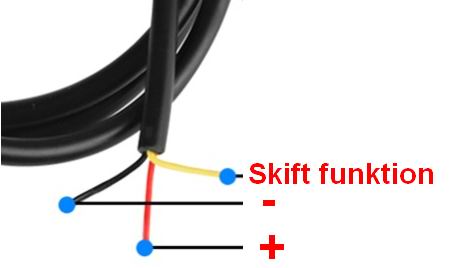 Lygten har 3 ledninger : Rød til + , Sort til - og med den gule ledning skifter man mellem de forskellige strobe lys funktioner på +.