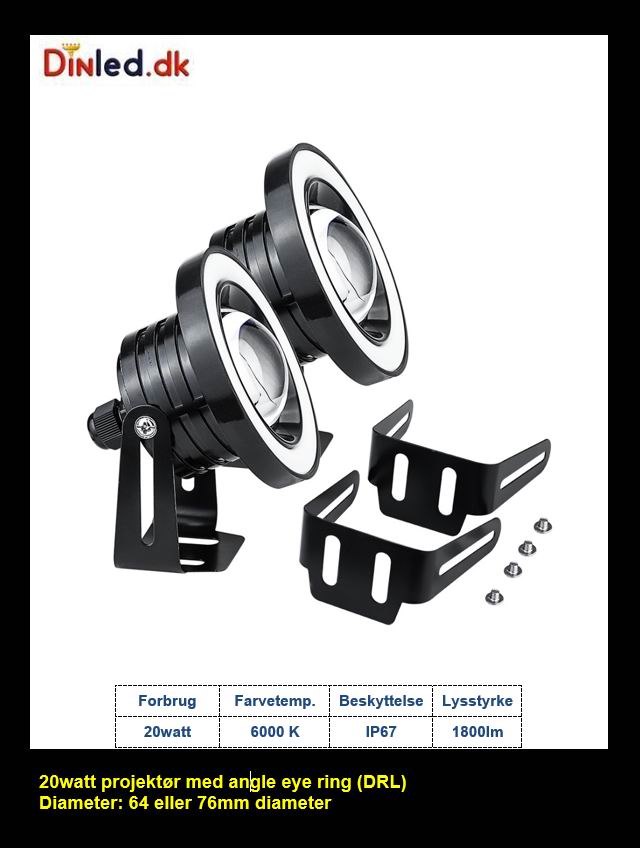 LED Eagle Eye projektør sæt med 2 stk.12 volt - 20 watt