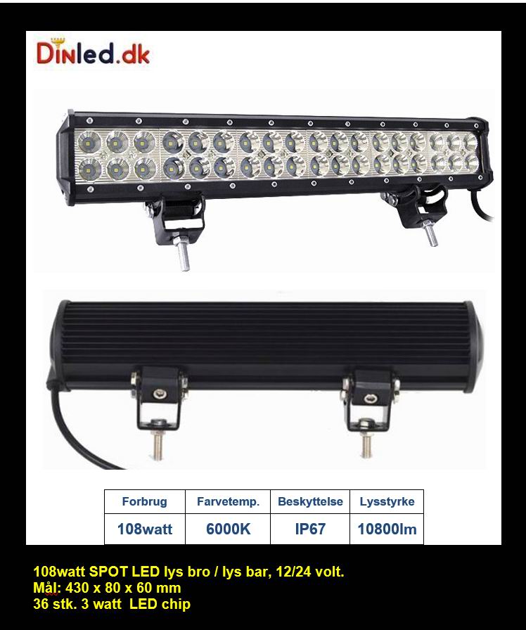 LED Lys bro / lys bar 108 watt 12/24 volt SPOT
